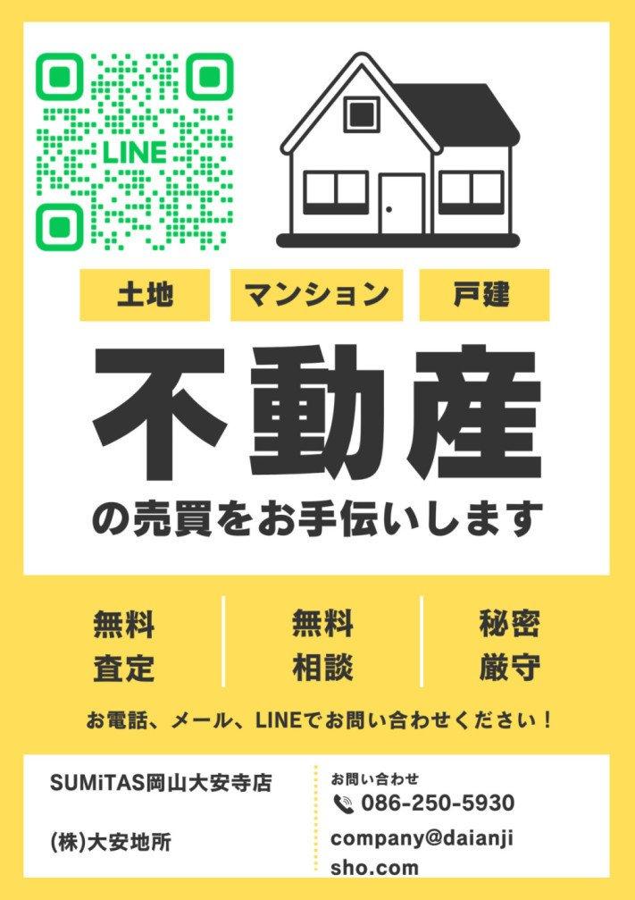 不動産の無料査定なら、地域密着のSUMiTAS岡山大安寺店(株)大安地所へ